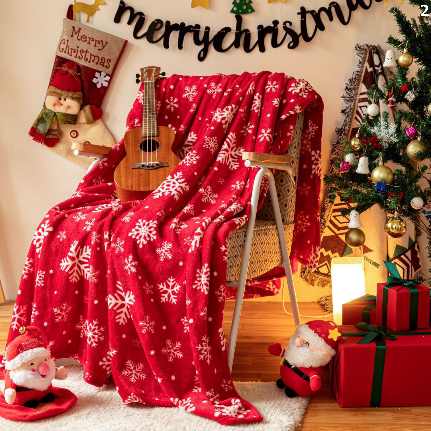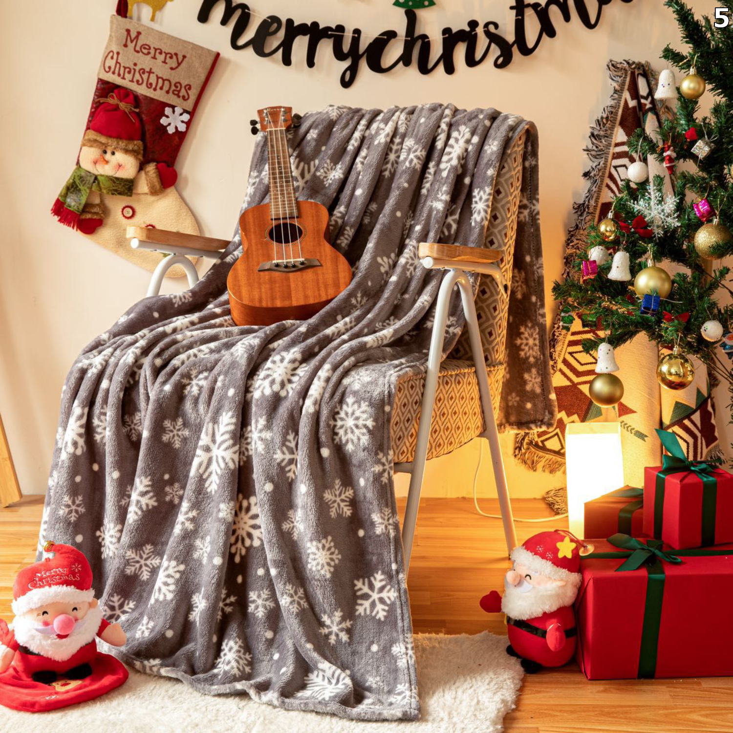 Uživajte u toplini i udobnosti tijekom hladnih zimskih dana uz našu prekrasnu božićnu deku s blagdanskim motivima. Idealna je za opuštanje na kauču, gledanje filmova ili kao dekorativan dodatak koji će unijeti božićni duh u vaš dom.