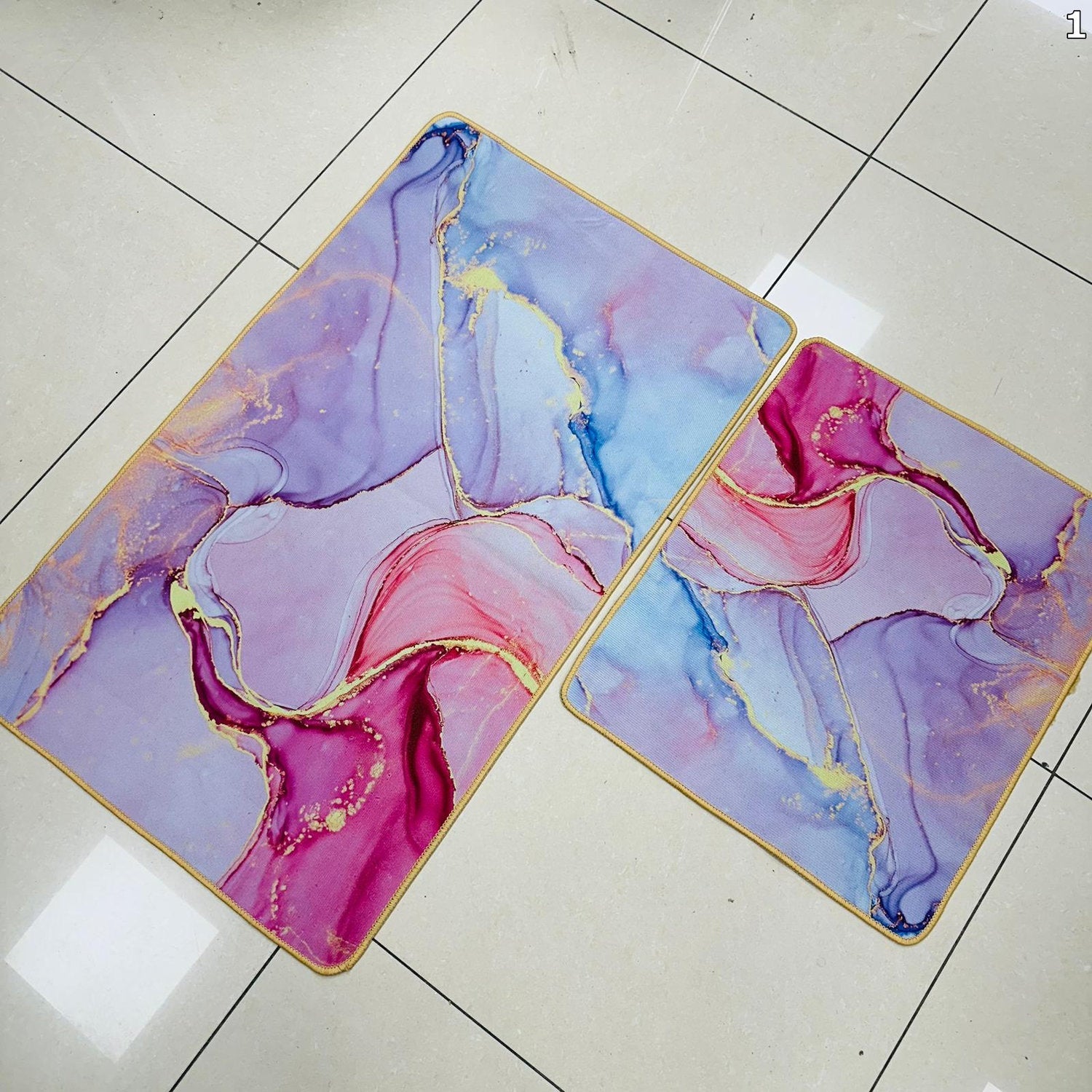 Tepisi su izrađeni od visokokvalitetnog, mekog materijala koji brzo upija vlagu i brzo se suši, pružajući dugotrajnu svježinu. Protuklizna podloga na dnu osigurava stabilnost i sprječava klizanje, čak i u vlažnim uvjetima. Lako se održavaju, jer su perivi u perilici rublja.